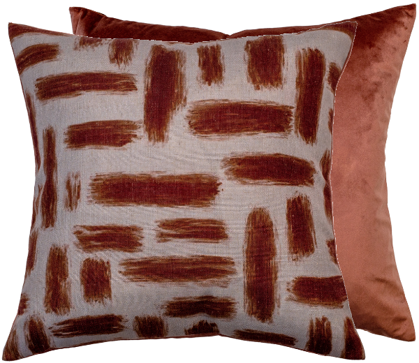 ABSTRACT PRINTED LINES ON LINEN RUST 45 X 45