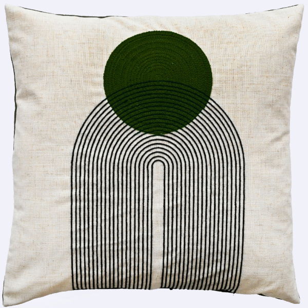 ART DECO DESIGN WITH CHAIN CREWEL STITCH OLIVE 45 X 45