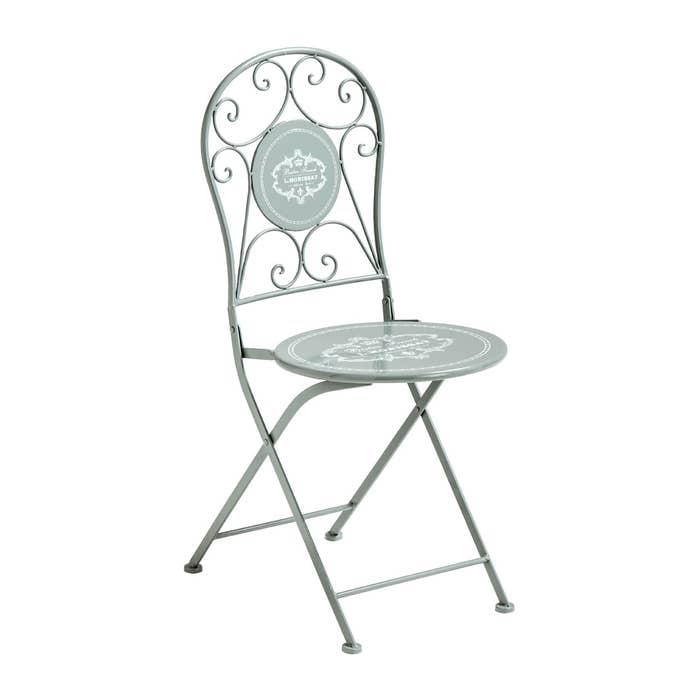 This beautifully shaped café chair is crafted from metal and can be fold for compact storage, while complementing most décor settings.