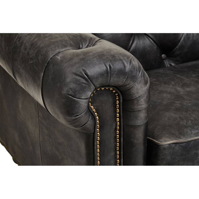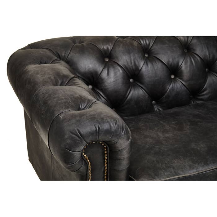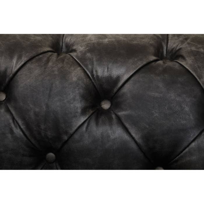Description Feature 1 Ebony Leather upholstery Feature 2 Classic chesterfield Feature 3 Deep button tufting Feature 4 Scrolled arms Feature 5 Traditional