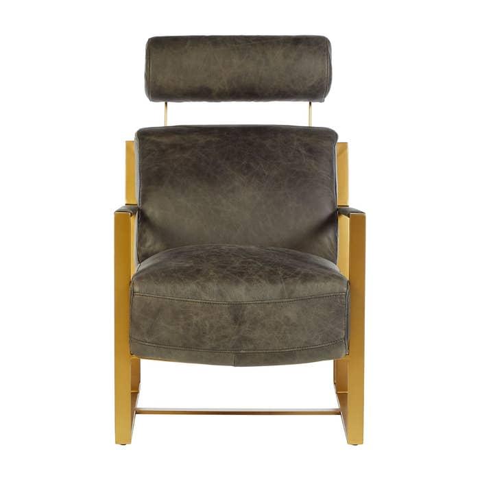 A genuine leather headrest adds a comfortable accent to the industrial style Hoxton lounge chair.