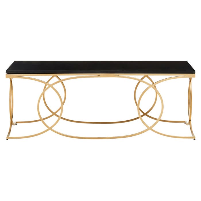 The Kia coffee table has a black marble top on a striking gold finish stainless steel frame, suitable for abodes demanding a classy aesthetic.