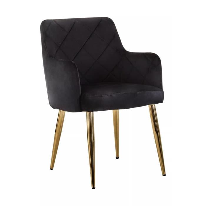 This Tamzin dining chair is an elegant addition with plush black velvet covering and gold finish metal legs which add a touch of luxury.